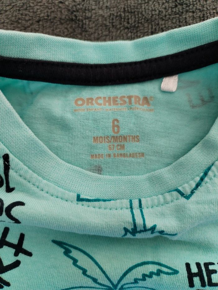 Tee-shirt manches courtes bleu 6 mois (67cm) Orchestra Très bon état