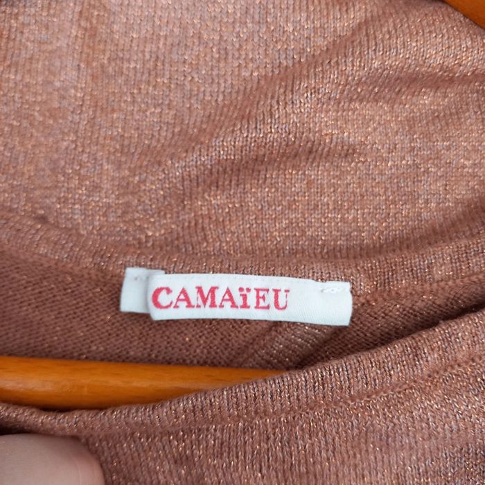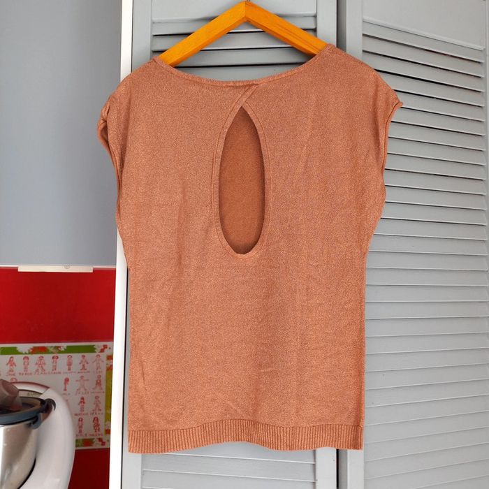 Haut marron pailleté Decolleté rond dans le dos Camaieu Taille 38