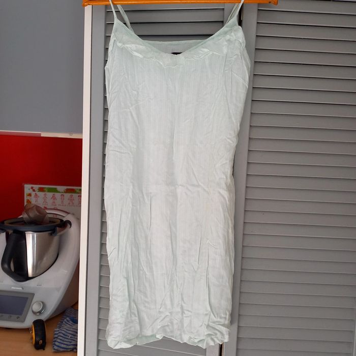 Chemise de nuit à petites bretelles réglables Vert pastel rayé blanc In extenso Taille l