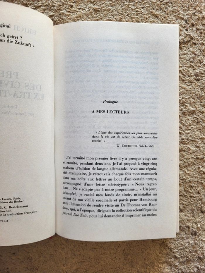 ⭐️ Nombreux livres dans mon dressing et réductions sur les lots activées ✨️ 📚 Livre "Preuves des civilisations extra-terrestres" d'Erich von Däniken, célèbre auteur suisse spécialisé dans les théories sur les anciens astronautes. Paru en 1985 chez France Loisirs 📖 Jaquette abîmée sur les bords mais couverture cartonnée et pages en très bon état 📍Ufologie / Histoire alternative 📕 Dans cet ouvrage captivant, von Däniken explore les traces laissées à travers le monde par d’éventuelles civilisations venues d’ailleurs. Il analyse des vestiges archéologiques mystérieux, des textes anciens et des mythologies qui, selon lui, pourraient témoigner d’un contact avec des êtres extra-terrestres dans un passé lointain. L’auteur propose une lecture alternative de l’histoire humaine, entre science, spéculation et mystère.