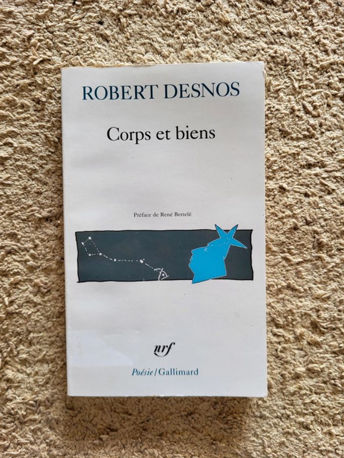 ⭐️ Nombreux livres dans mon dressing et réductions sur les lots activées ✨️ 📚 Livre "Corps et Biens" de Robert Desnos, avec une préface de René Berthelé Publié en 2010 aux éditions Gallimard. 📖 Couverture et pages en bon état sans usure importante 📍Recueil de poèmes publié en 1930 📕 Un recueil emblématique du surréalisme, mêlant humour, amour, révolte et onirisme. L’auteur y fait preuve d’une liberté d’écriture étonnante, entre vers libres, jeux de langage et images fulgurantes.