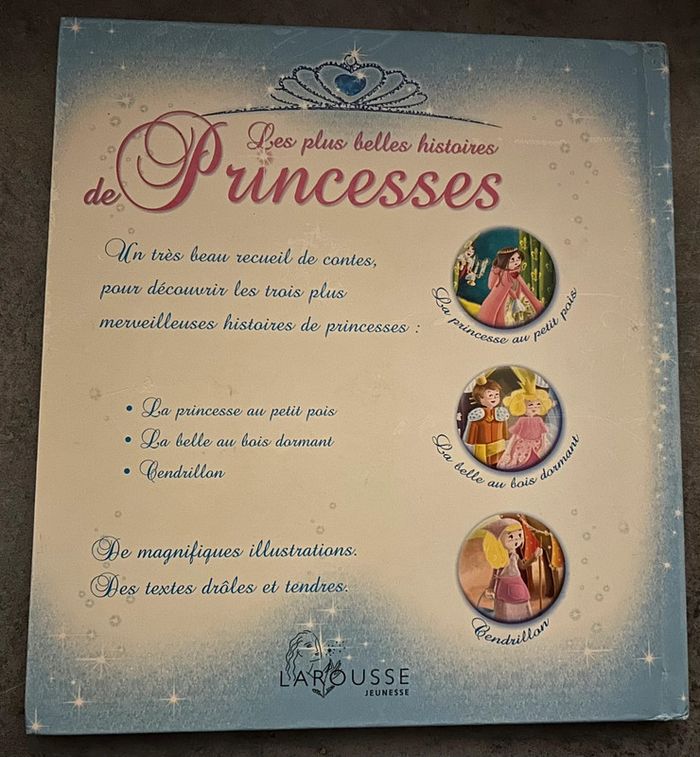Un superbe livre pour découvrir l’univers merveilleux des princesses. - De très belles illustrations. - Une introduction drôle et attendrissante sur la tenue et la vie des princesses. - Les 3 plus belles histoires de princesses. Et un grand tiroir avec à l’intérieur : - Une superbe robe en satin bleu clair. - Un magnifique diadème. - De belles boucles d’oreilles.