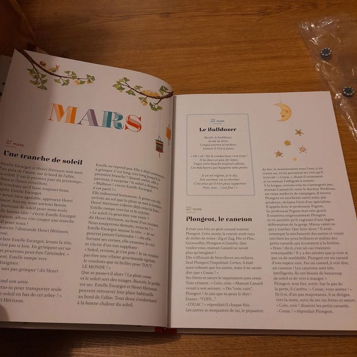 Livre une histoire chaque soir : 365 histoires, longueur variable d'une quinzaine de lignes à une page. Très bon état, une petite déchirure sur la couverture intérieure.