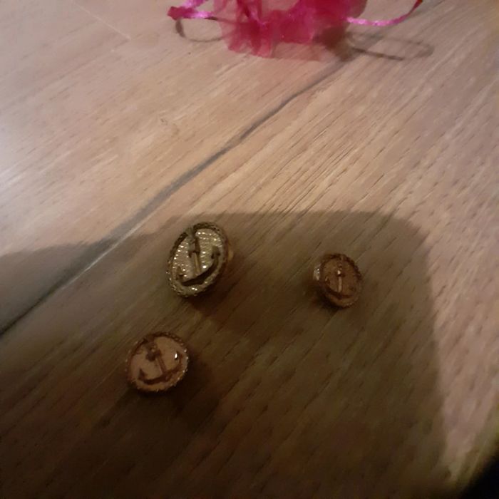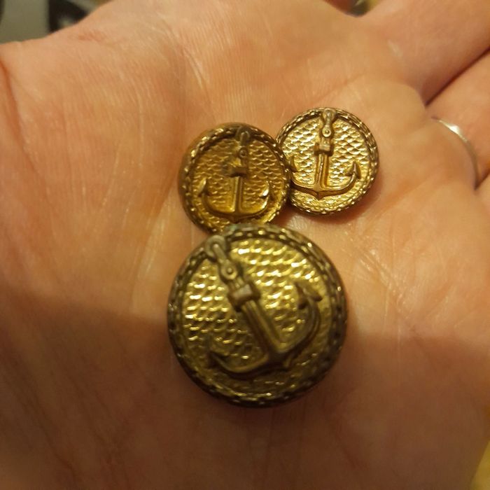 Lot de 3 boutons vintage doré motif ancre : - 2 petits boutons et un grand.