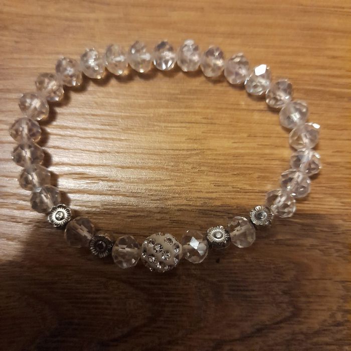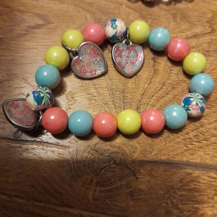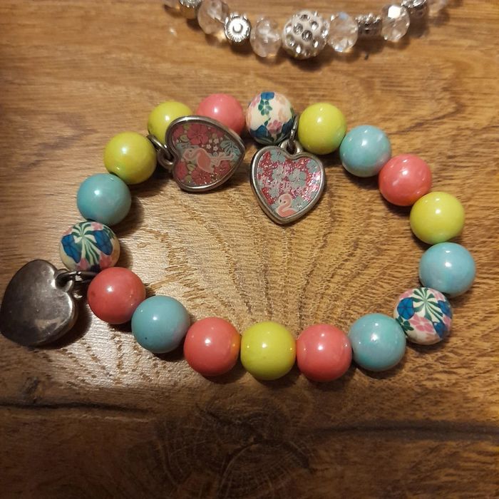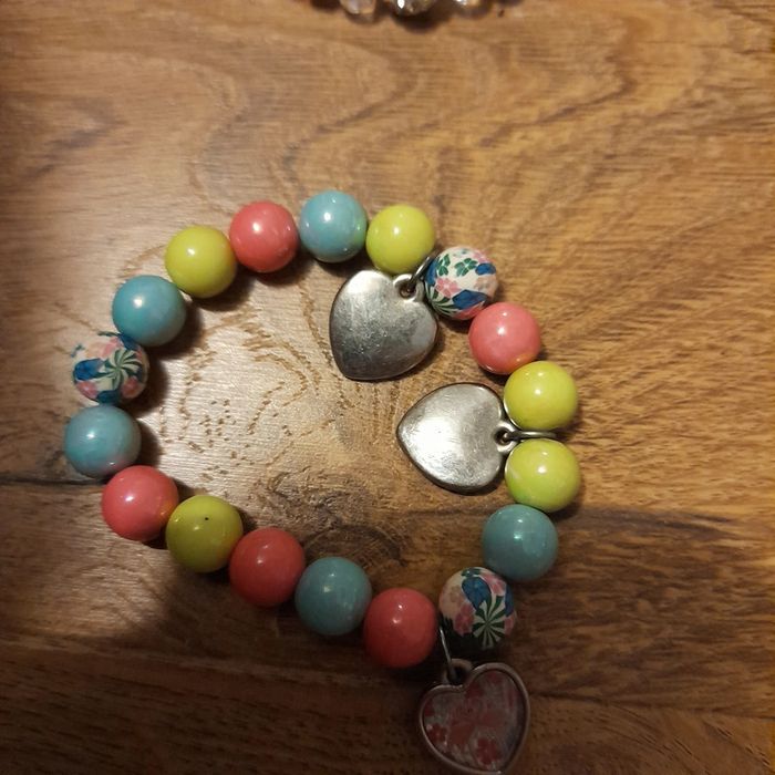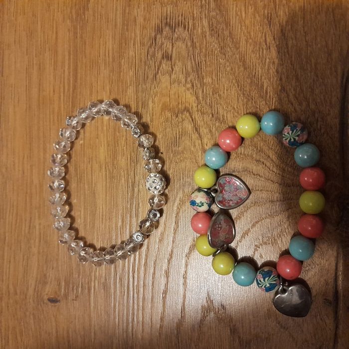 Lot de 2 bracelets : - un bracelet avec perle multicolore et cœur - un bracelet perle transparente