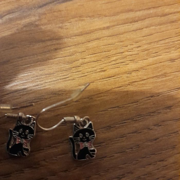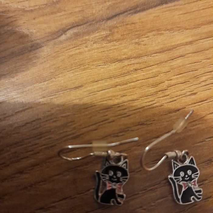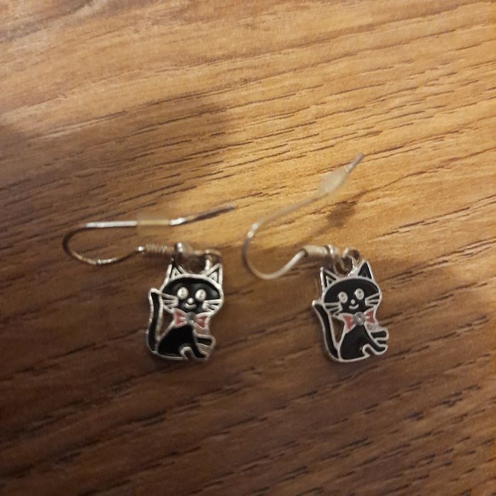 Boucle d'oreille pendante fille chat - photo numéro 2