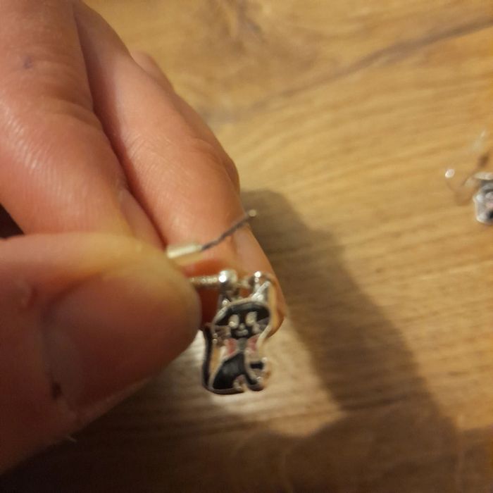 Boucle d'oreille pendante fille chat - photo numéro 3