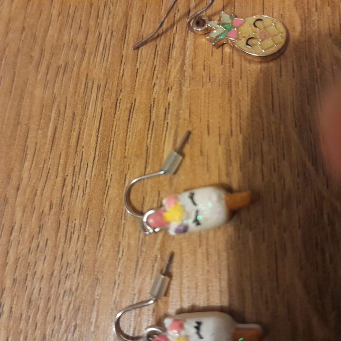 Lot de 2 paires de boucles d'oreilles pendantes kawaii : - une paire d'esquimau licorne - une paire d'ananas