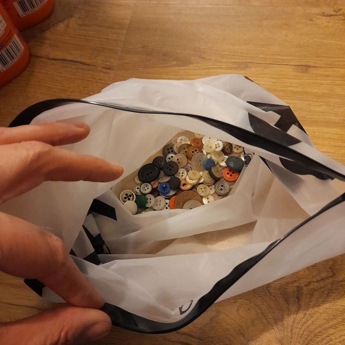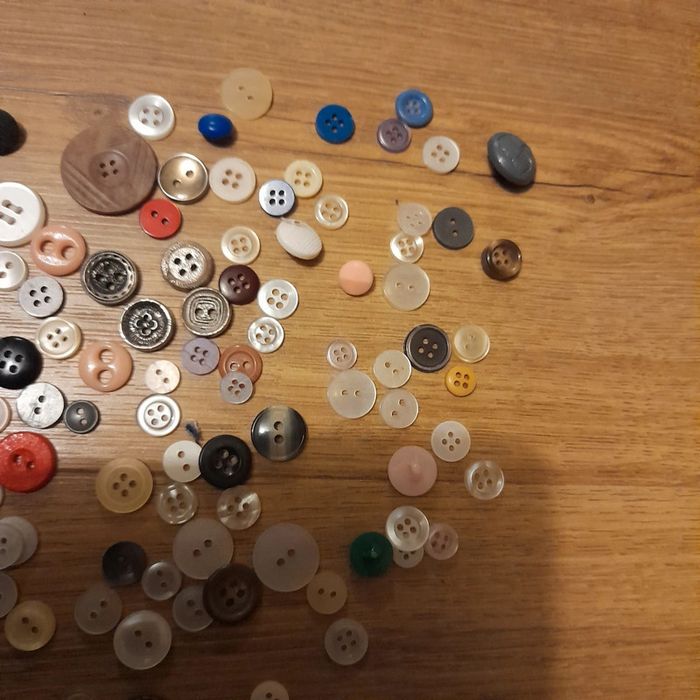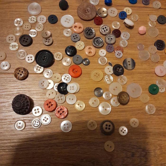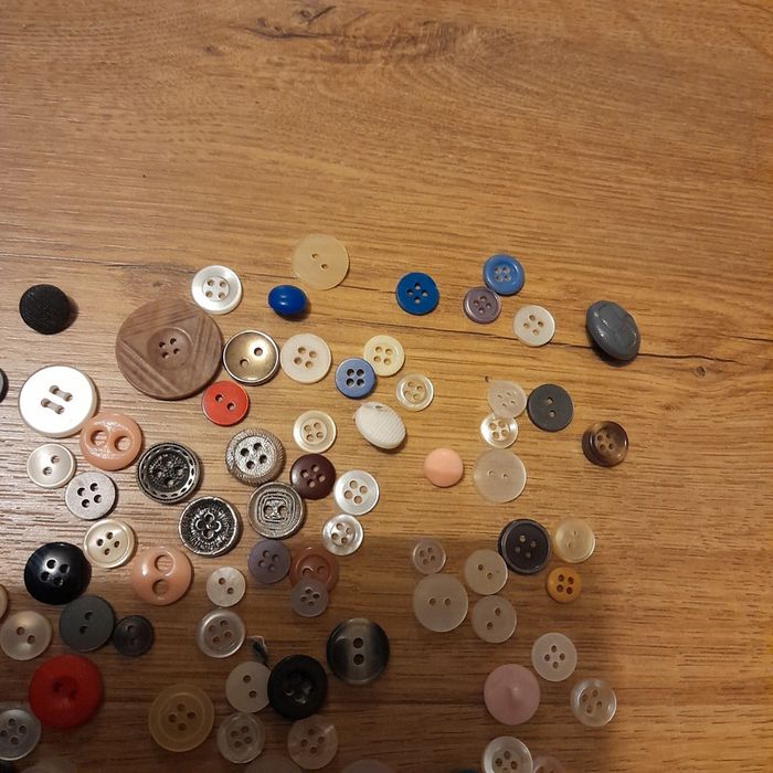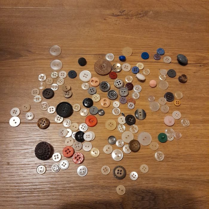 Lot d'une centaine de boutons vintage, couleurs et tailles variés.