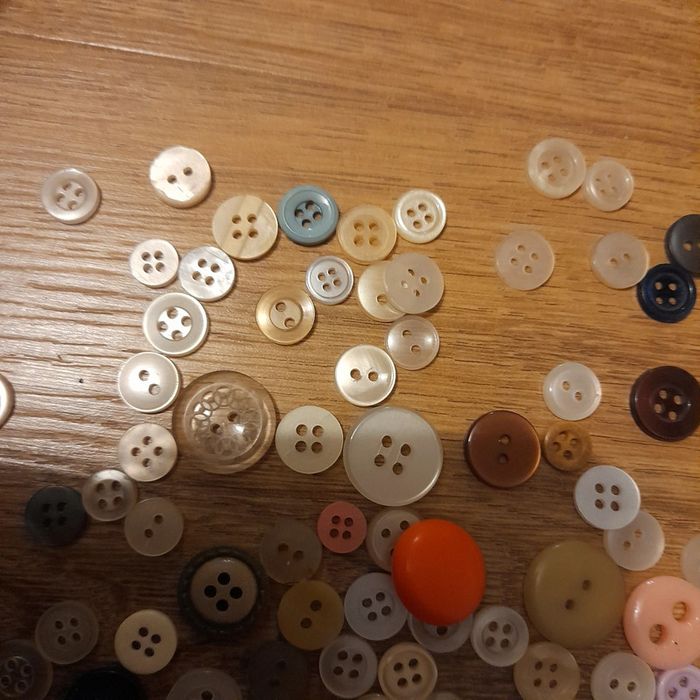 Lot d'une centaine de boutons vintage, couleurs et tailles variés.