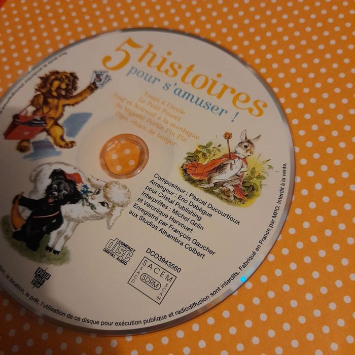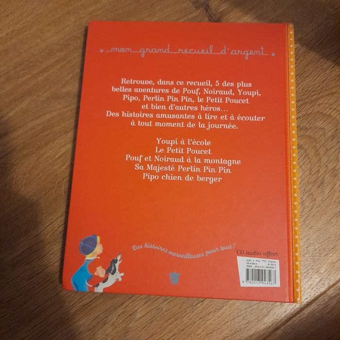 Livre 5 histoires avec cd (jamais utilisé) mon grand recueil d'argent. Traces d'usures sur la couverture type griffures, sur la première pages à l'intérieur papier un peu arraché car présence d'un scotch qui a été enlevé.