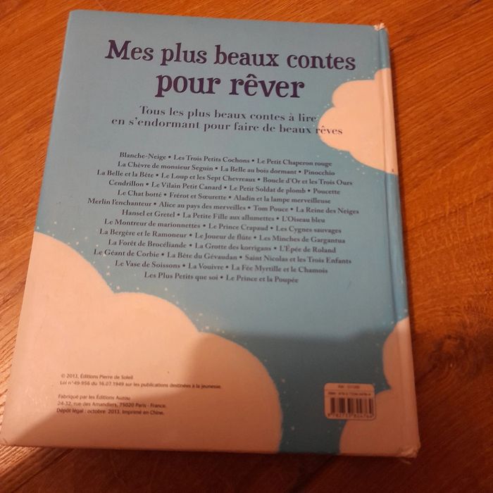 Livre de conte pour le soir : les grands classiques blanche neige, Pinocchio, les 3 petits cochons, hansel et gretel, etc. Traces d'usures sur le livre type griffures sur la couverture, coup sur les coins, la tranche est un peu décollée : voir photos.