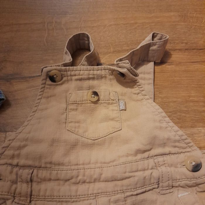 Salopette courte taille 24 mois ou de 83 à 89 cm, marque kiabi marron clair.