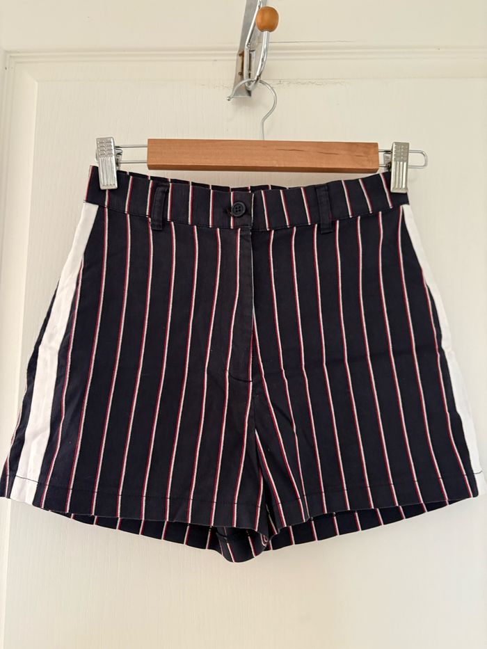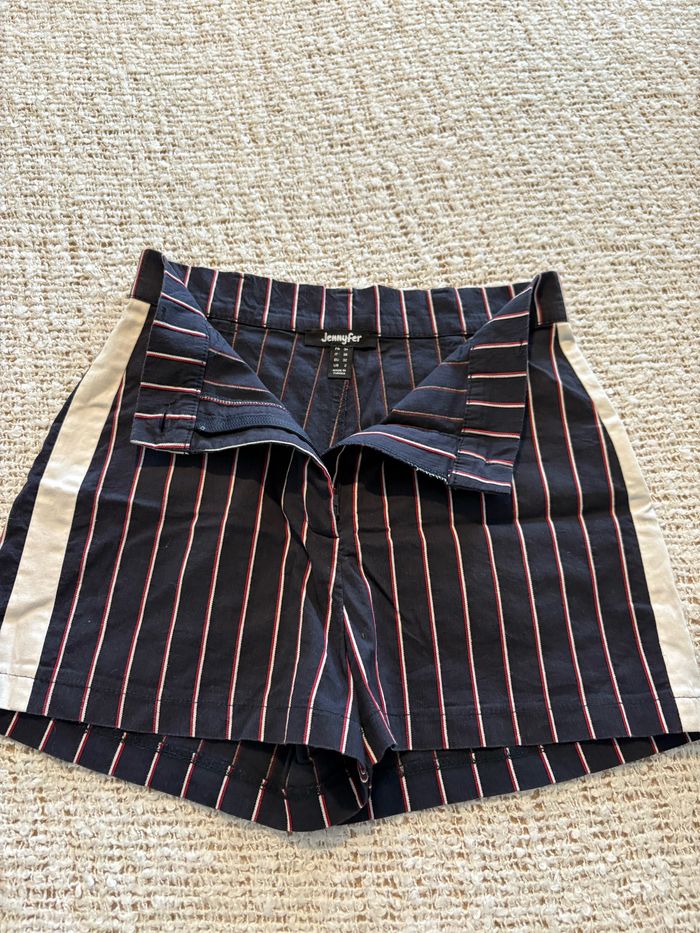 Short « Jennyfer » bleu marine rayé, taille 34 TBE Tour de taille 32 cm Longueur de la taille à l’entrejambe 30 cm #sandra13190femmestailleXXS #sandra13190femmestailleXS