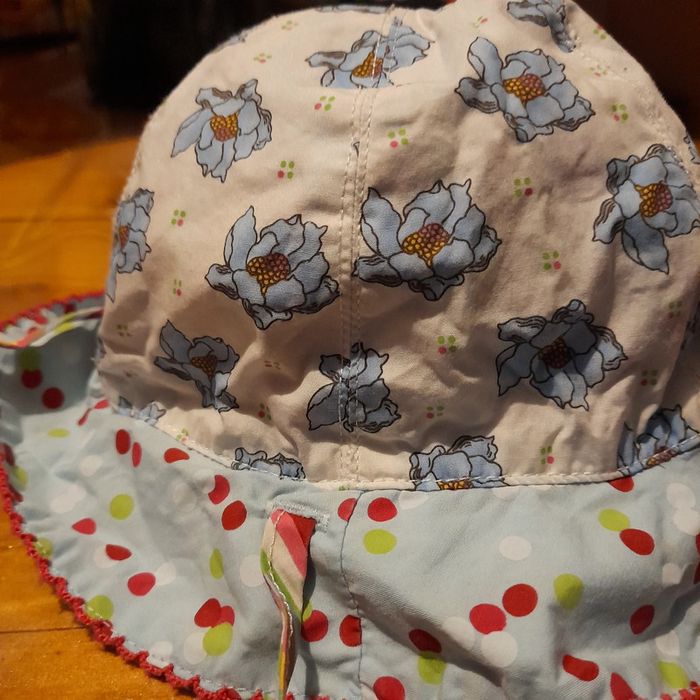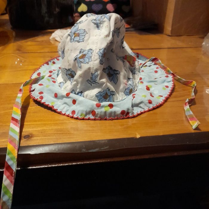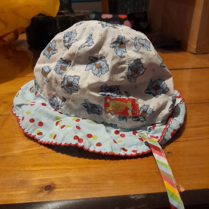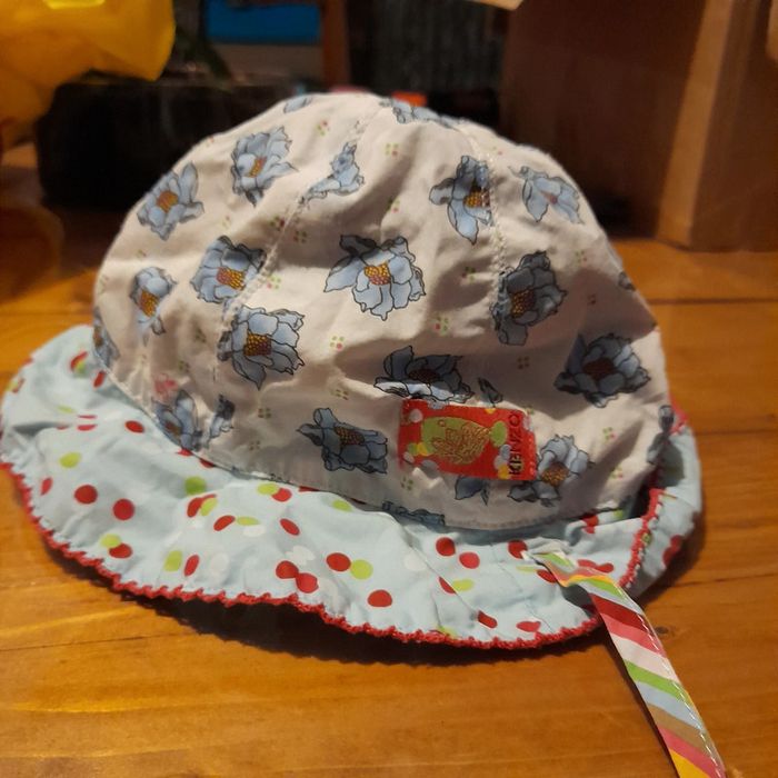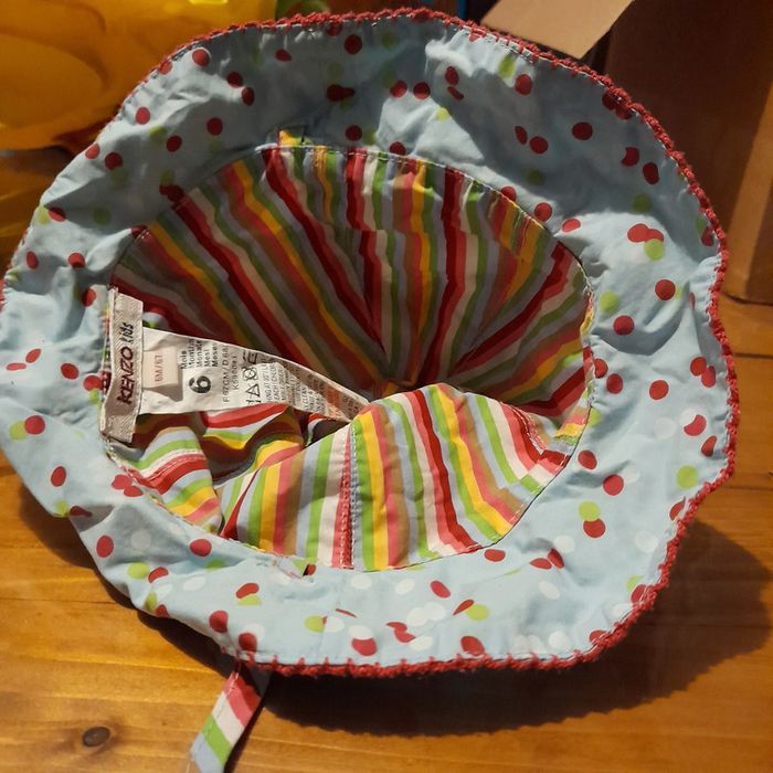 Chapeau bébé, marque kenzo, taille 6 mois, avec lien pour l'attacher.