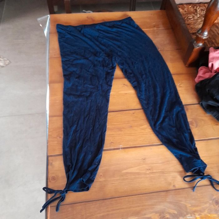 Leggin femme t2 couleur bleu marine, longueur 7/8 ème, lacet au bas jambe.