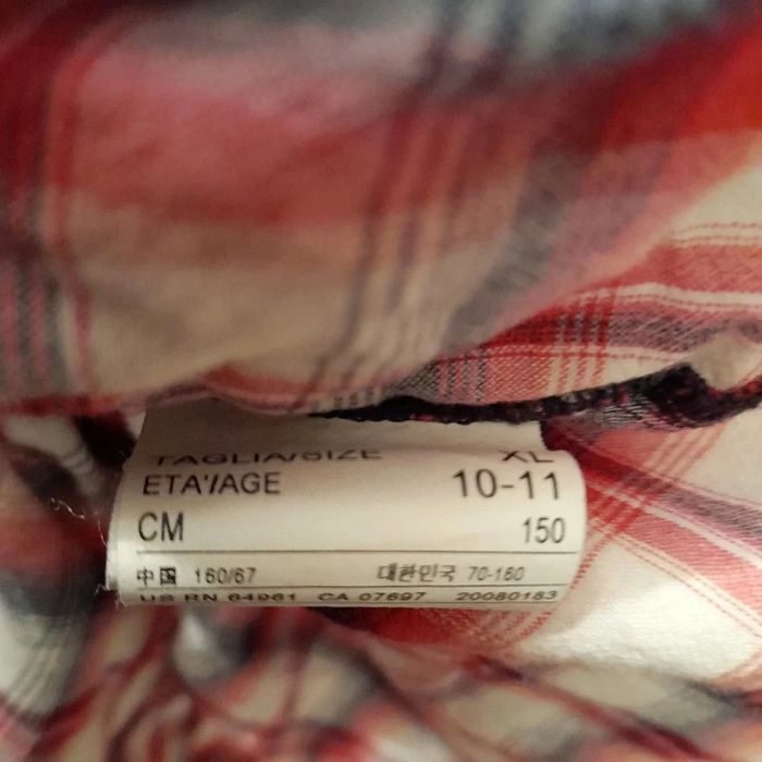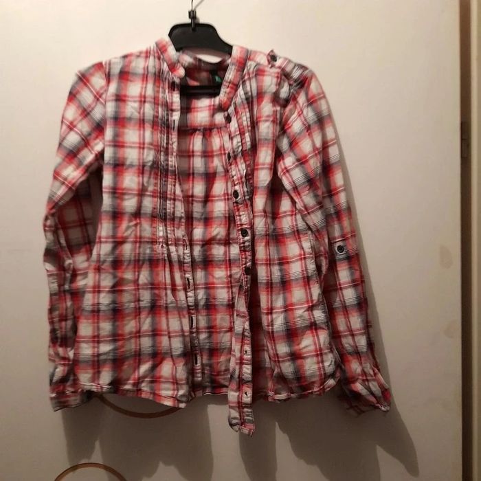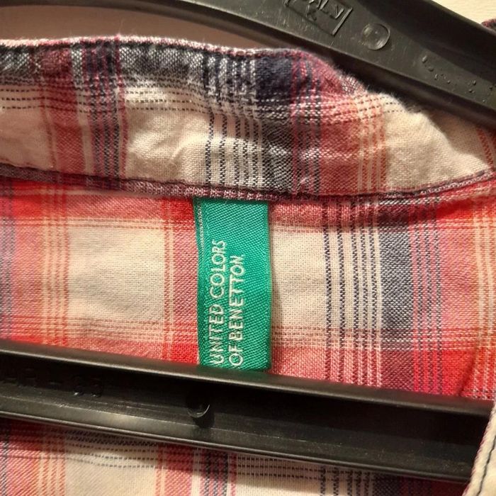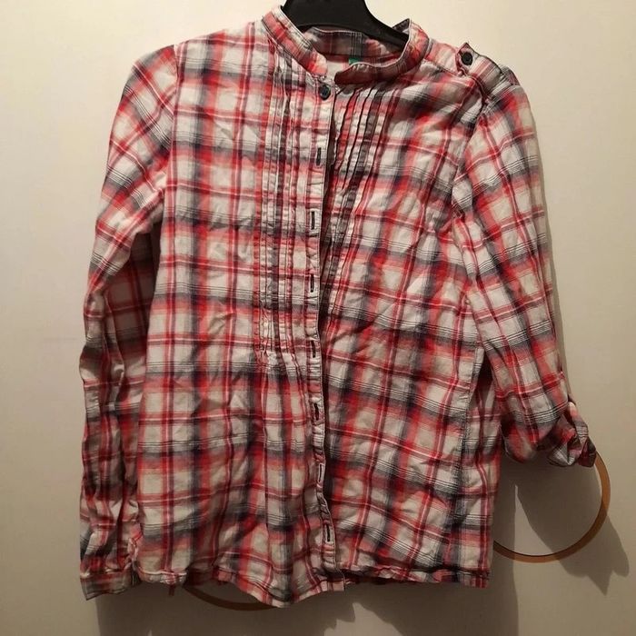 Chemise marque united color benetton taille 10-11 ans, rayé rouge et blanc. Porté en bon état. Bouton pour attaché manche à moitié.