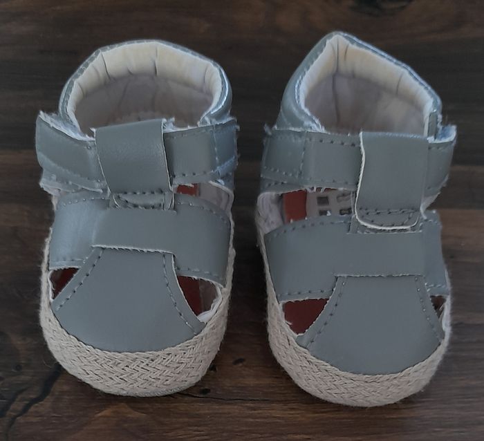 Sandales bébés garçons grises avec pour tour façon espadrilles. Scratch pour un enfilage facile. De la marque P'tit Bisou. Neuves jamais portées ! Taille 3/6 mois ou 15/16.