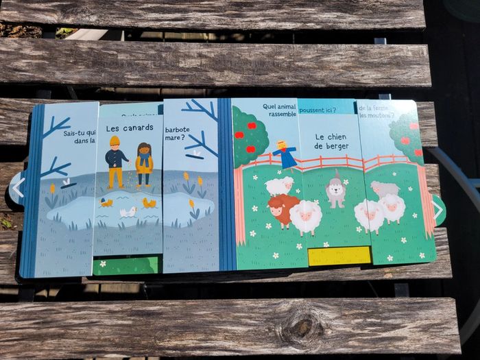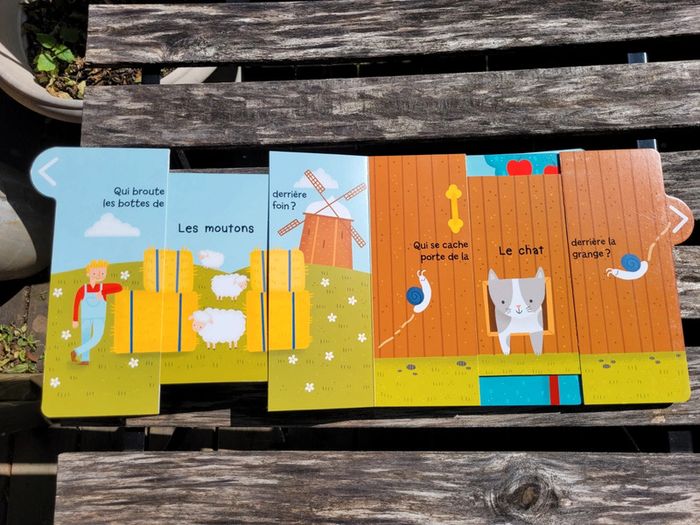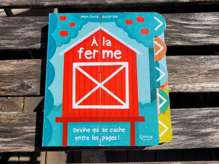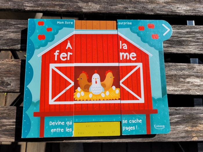 MON LIVRE SURPRISE À LA FERME DEVINE QUI SE CACHE ENTRE LES PAGES! ÉDITIONS KJMANE Un adorable livre tout-carton avec une tirette à chaque page pour découvrir la ferme et ses animaux. En très bon état Je vends également les livres surprises Les animaux et les transports Mes autres livres enfants : #livreenfantmooglou
