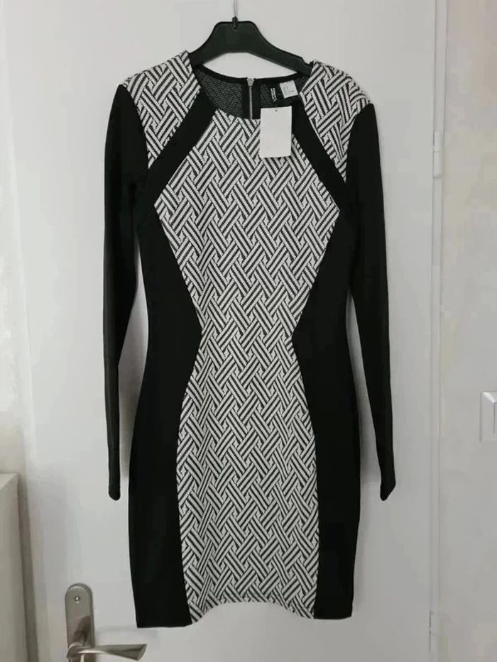 Robe moulante graphique noire et blanche H&M neuve avec étiquette taille 36 - photo numéro 1