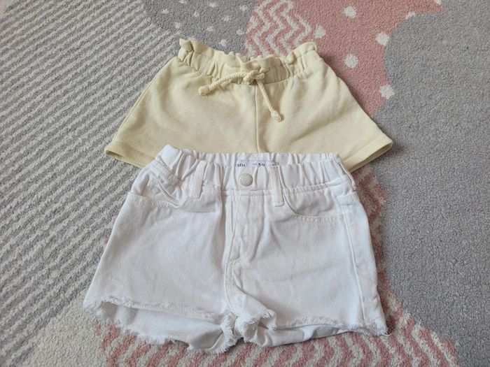 Lot de 2 shorts Zara 9-12 mois : un short en jeans blanc et un short jaune. Taille grand plutôt comme du 12-18 mois. Très bon état. #delf69_fille_9mois #delf69_fille_12mois #delf69_fille_18mois