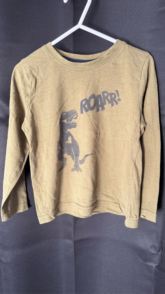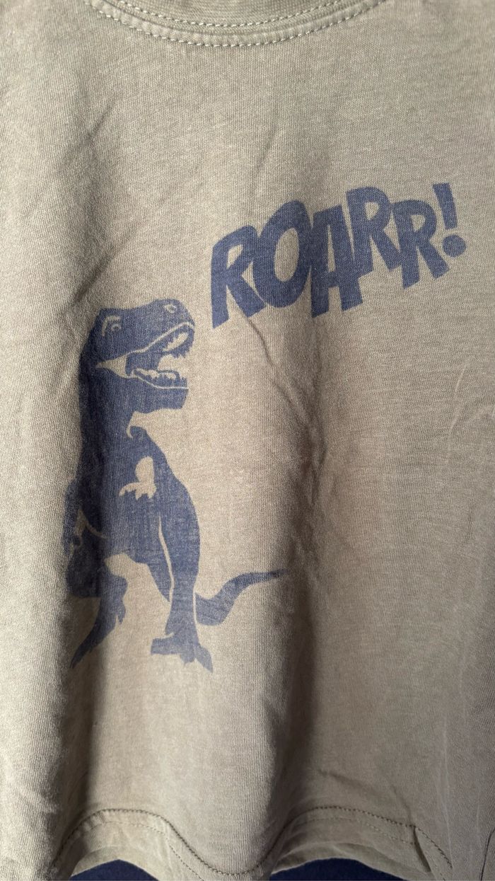 Couleur uni kaki, thème dinosaure Taille 3-4 ans