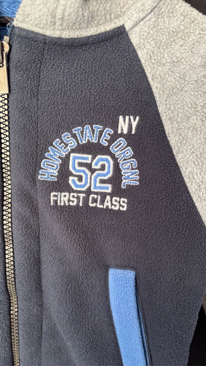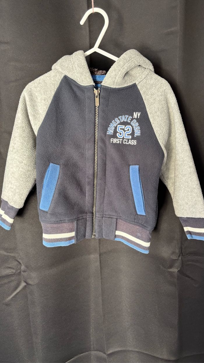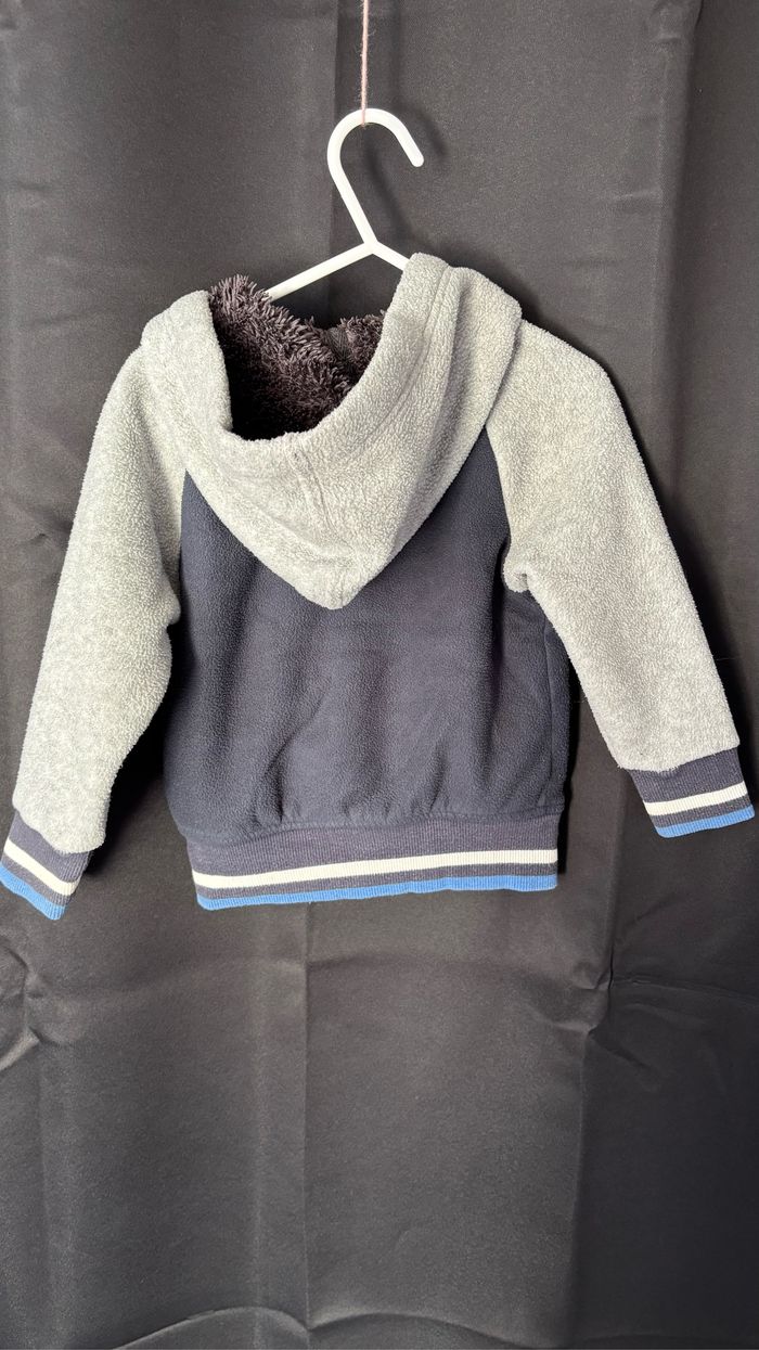 Couleur uni bleu et manche grise avec fermeture éclair et capuche