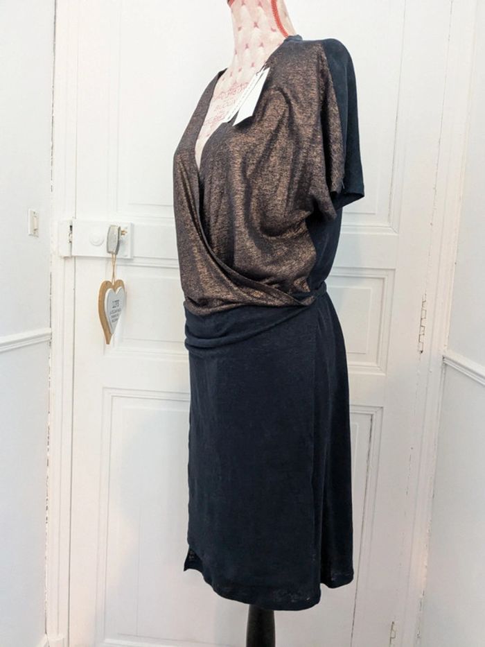 Robe cache coeur en lin bleu et rose Copper brillante - photo numéro 2