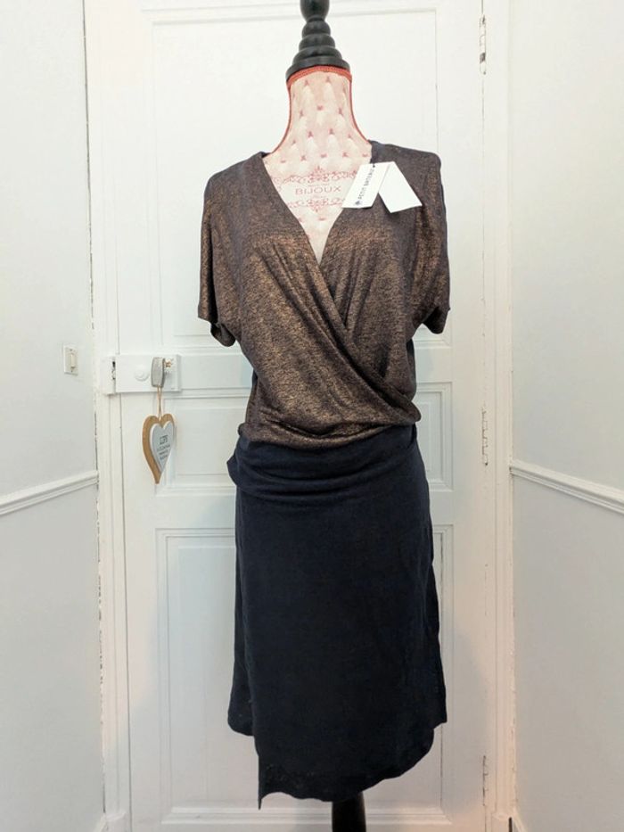 Robe cache coeur en lin bleu et rose Copper brillante - photo numéro 1