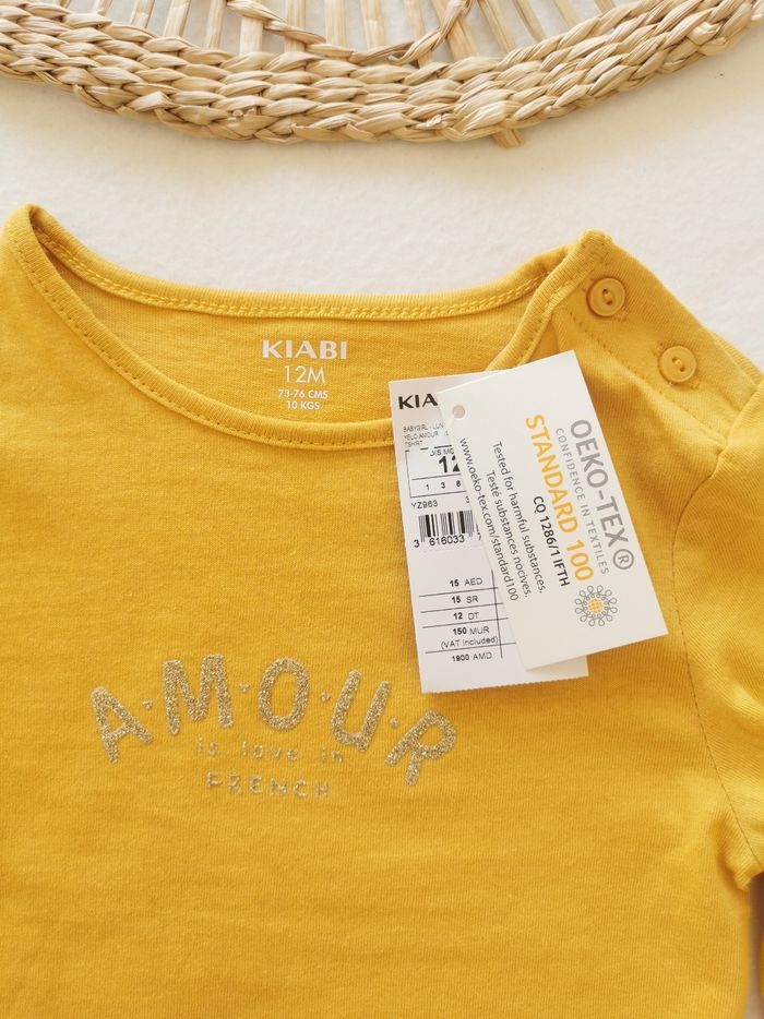 Tee-shirt moutarde "Amour" Kiabi 12 Mois