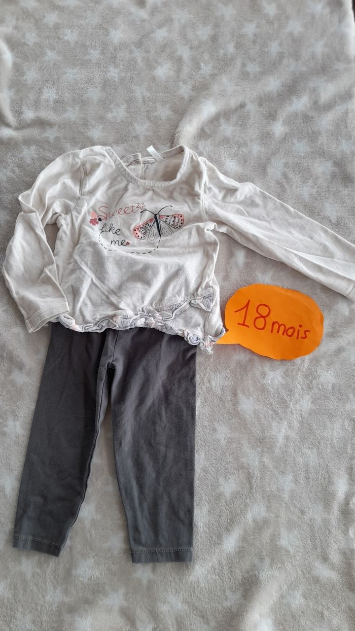 Ensemble tee shirt à manches longues à frou-frou, et legging gris