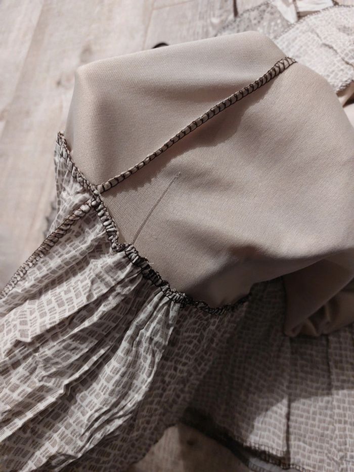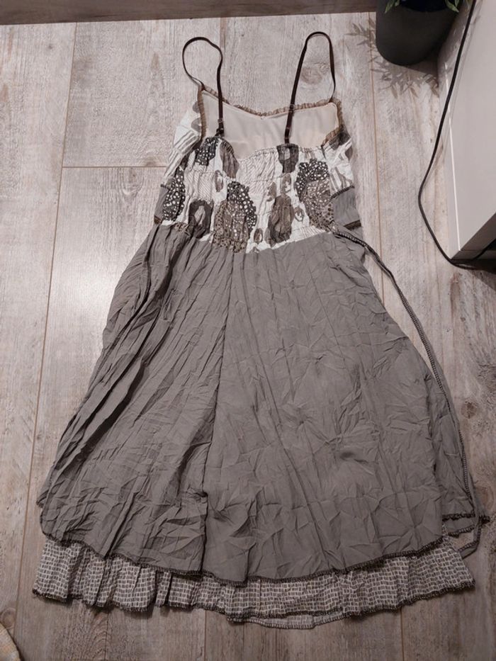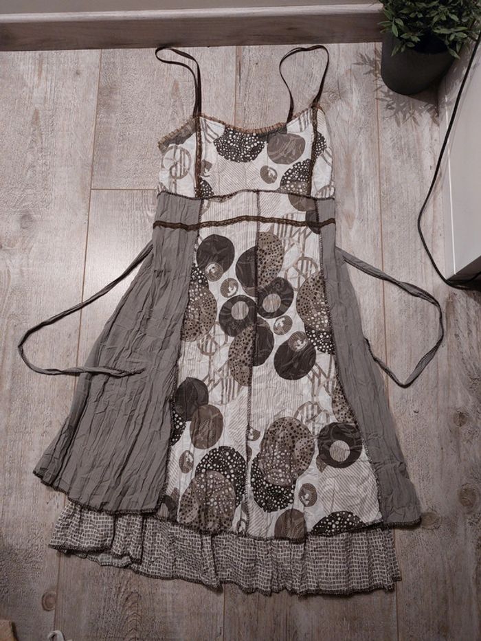 Robe à motif de couleur taupe/marron. Avec une doublure. Taille unique. En très bon état (sauf un légère marque, voire photo 4)