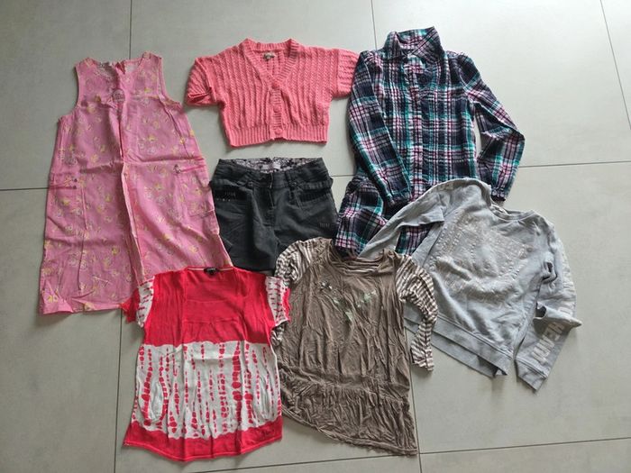 1 robe obaibi 1 tunique orchestra 1 gilet in extenso 1 pull Dkny 1 sweat h&m 1 tunique la compagnie des petits 1 short Mia soana En très bon état (0.)