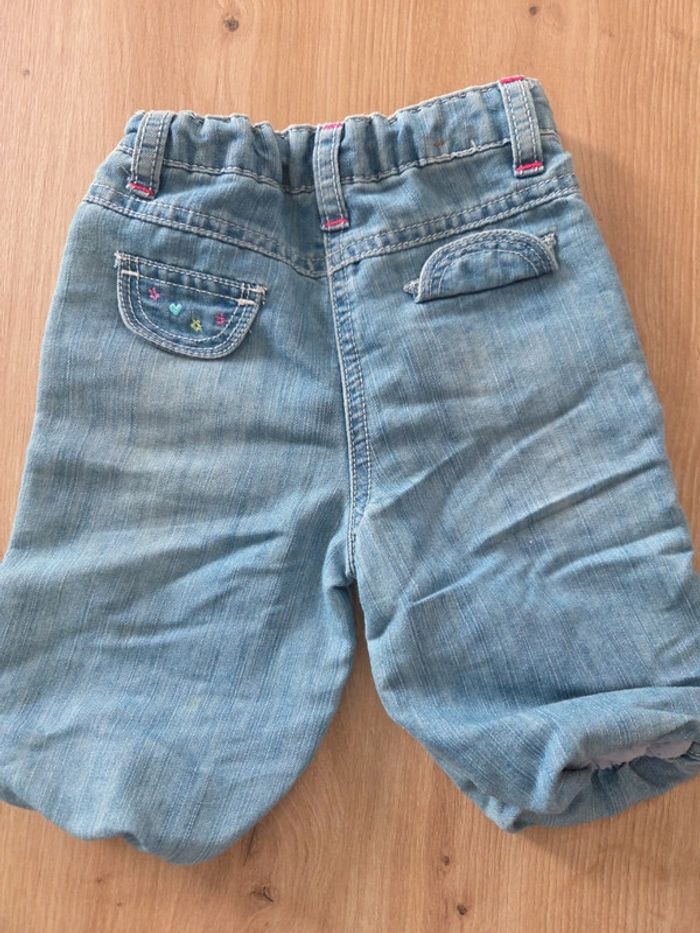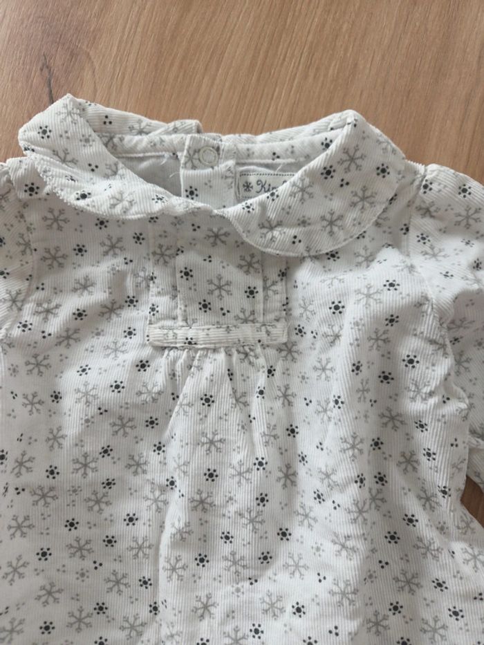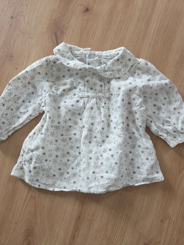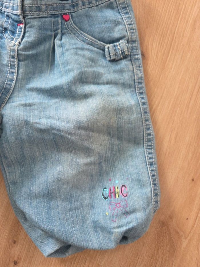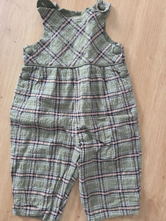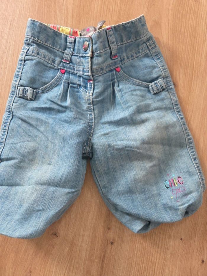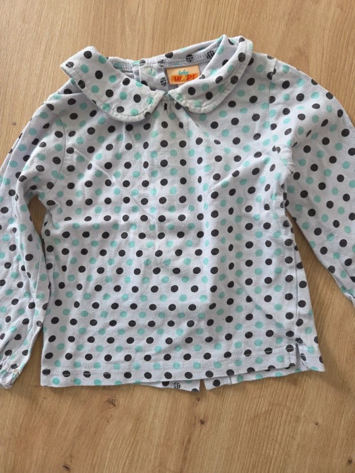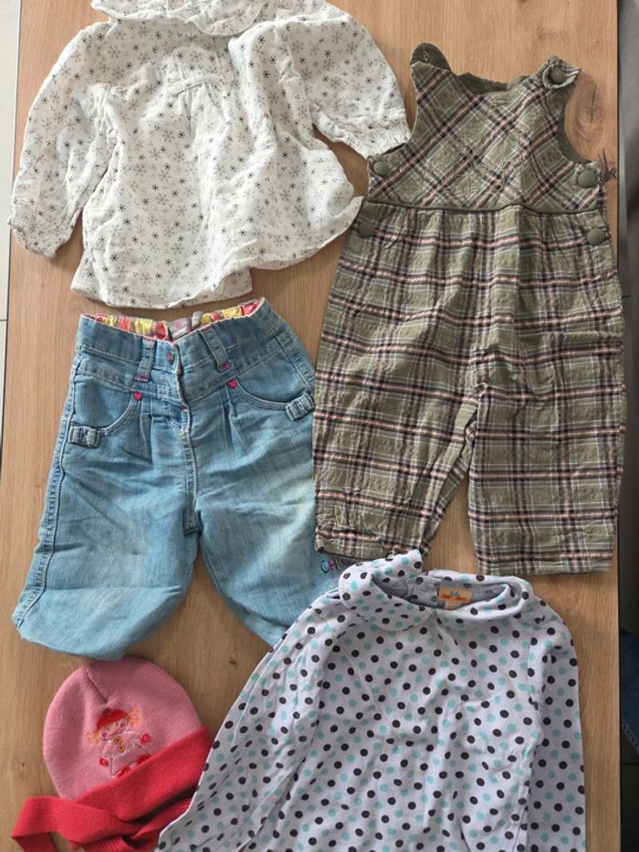 1 Jean orchestra 1 T-shirt manches longues baby wapi 1 chemise kimbaloo 1 bonnet 1 salopette pirouette et cacahuète En très bon état (0.)