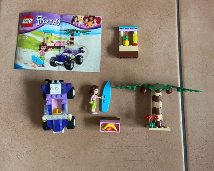 Lego Friends 41010 : le buggy de plage d’Olivia Complet avec notice Quelques traces d’utilisation sur la notice mais le lego est en très bon état Vous achetez ce que vous voyez sur les photos