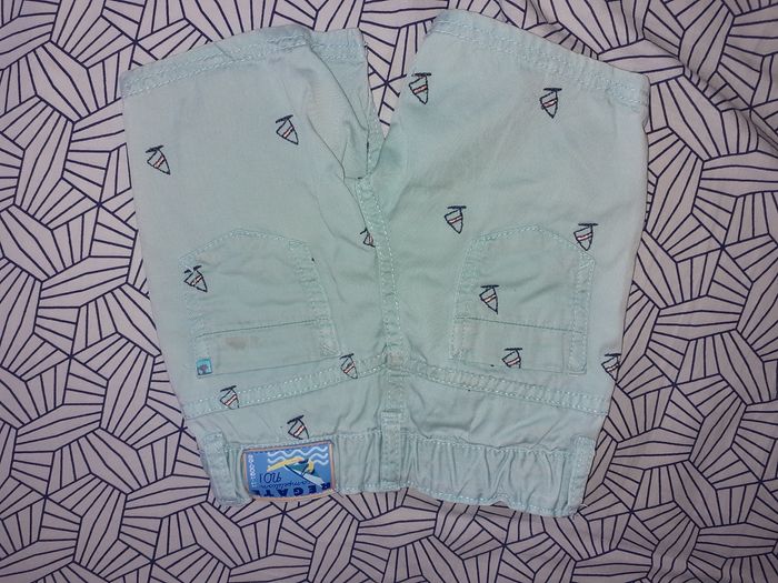 Joli short sergent major bleu ciel avec motif Acheté 25 euro , Petit prix car il a une tâche sur la poche arrière droite ( voir photo ) mais reste correct et de bonne qualité Peut encore servir
