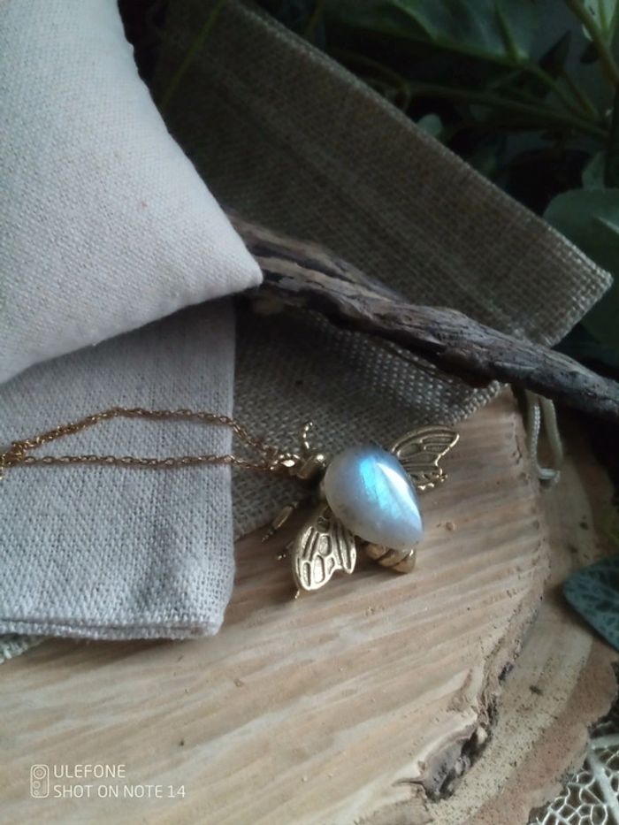 Collier abeille et pierre de Labradorite - photo numéro 1