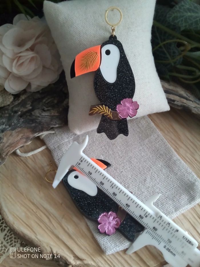 Boucles d'oreilles bohèmes toucans pailletés - photo numéro 2