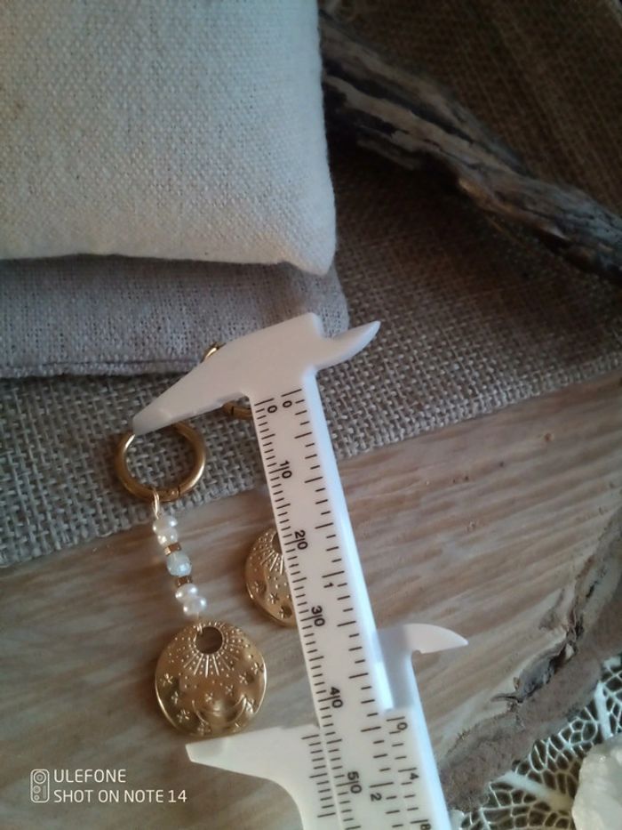 Boucles d'oreilles créoles bohèmes lune/soleil et pierres naturelles - photo numéro 2