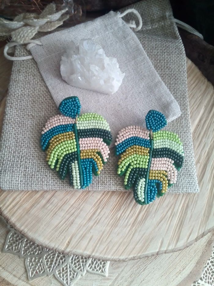 Boucles d'oreilles feuilles bohèmes tropicales - photo numéro 1