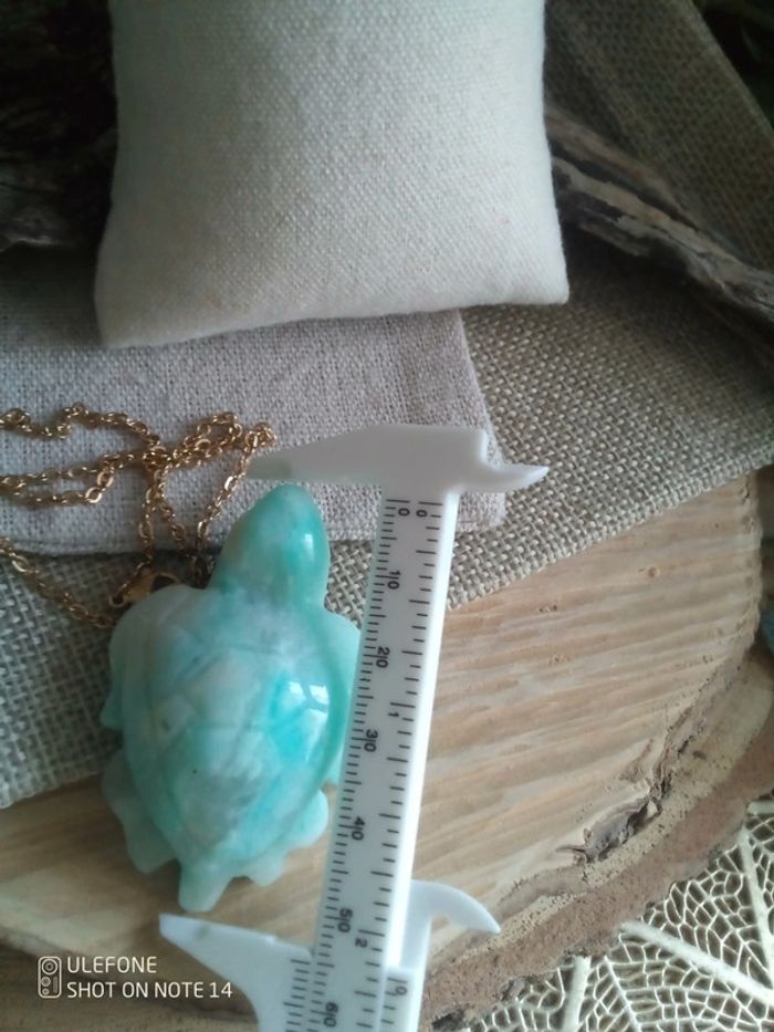 Collier sautoir pendentif tortue en pierre naturelle d'amazonite - photo numéro 3