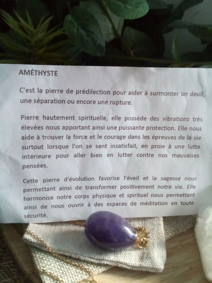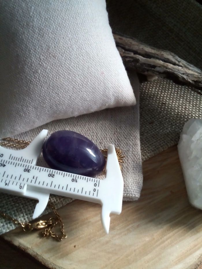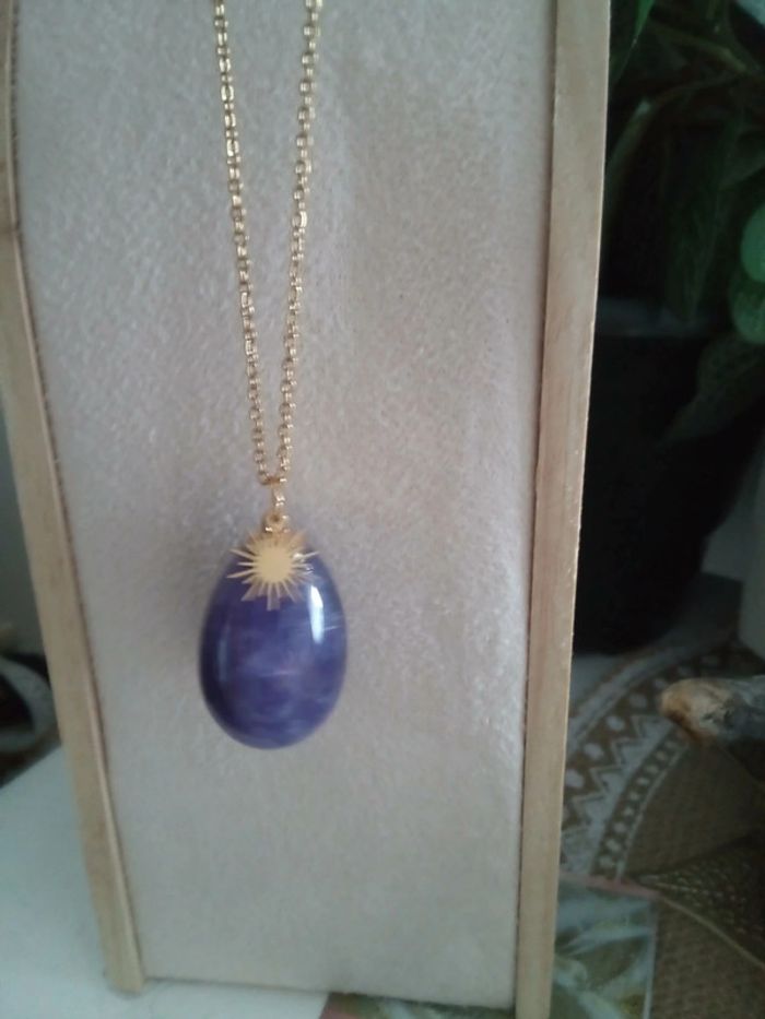 Collier pendentif pierre d'améthyste et soleil doré - photo numéro 4