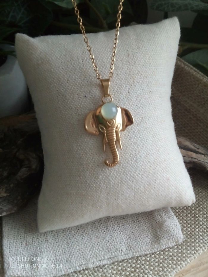 Collier calcédoine naturelle sur tête d'éléphant - photo numéro 1