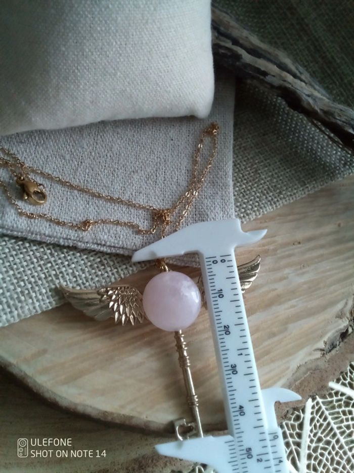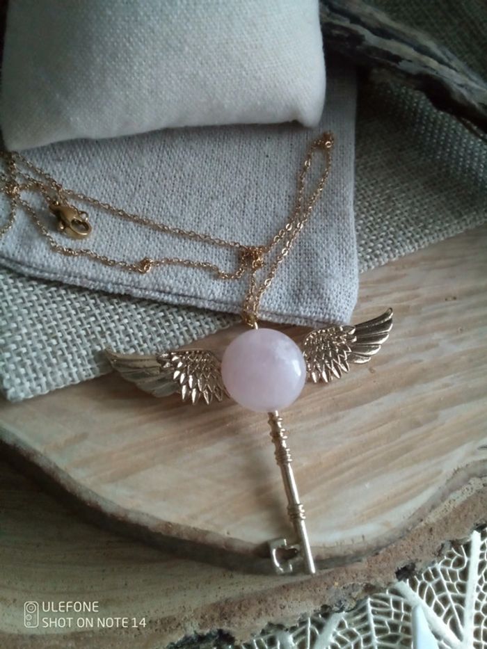 Collier clé ailée pierre de quartz rose 🩷. - photo numéro 4
