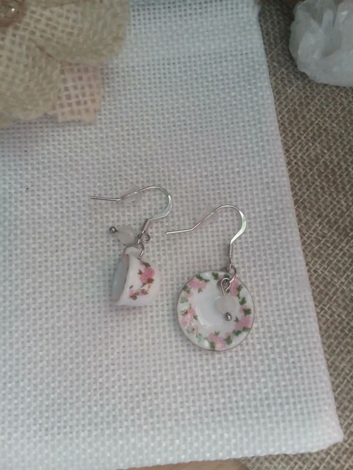 Boucles d'oreilles asymétrique tasse et soucoupe avec pierres de lune - photo numéro 2