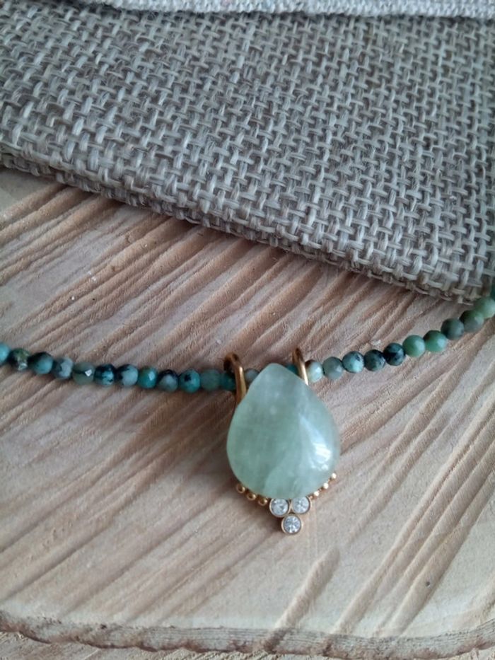 Collier en pierres de turquoise africaine et de fluorite - photo numéro 3