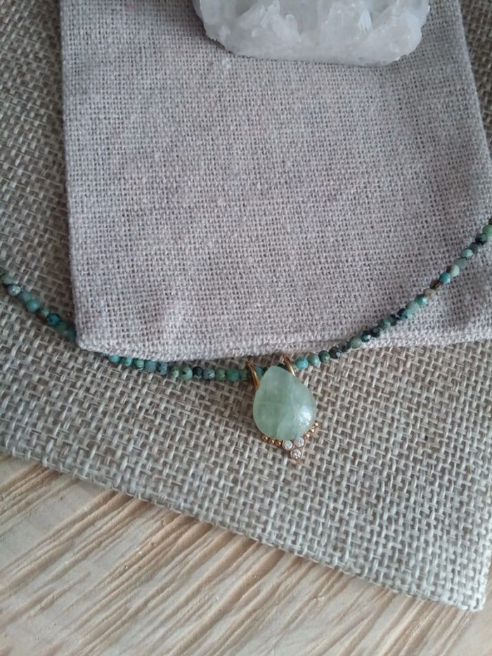 Collier en pierres de turquoise africaine et de fluorite - photo numéro 1