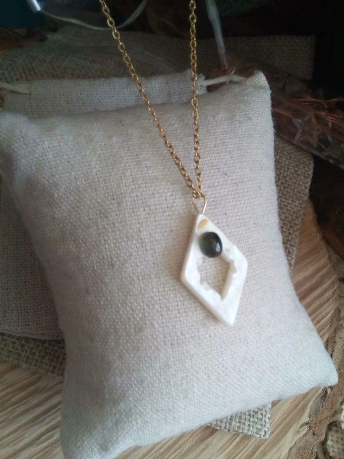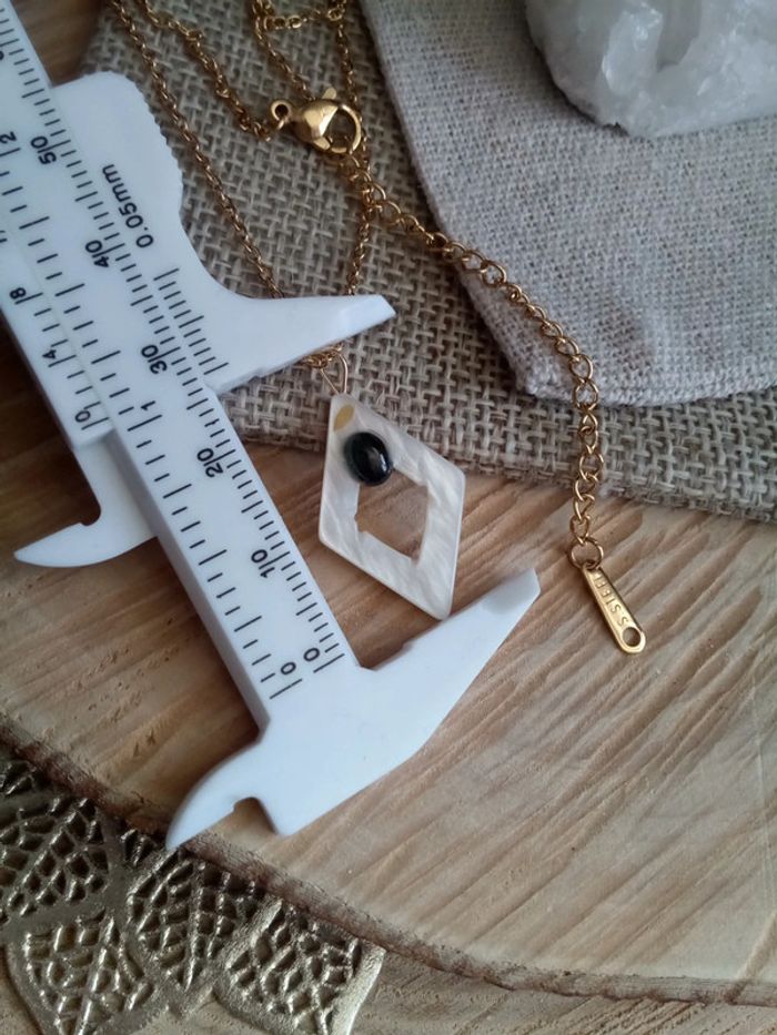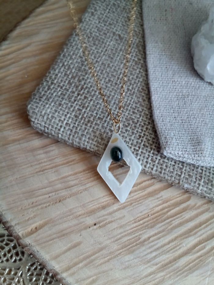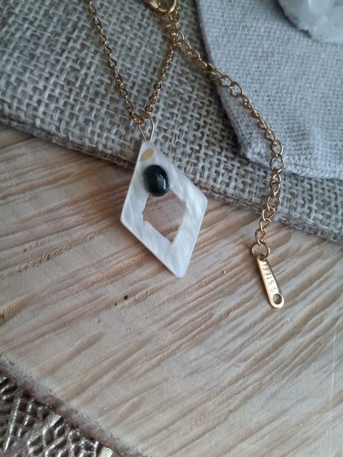 Collier losange de n'a'c'r'e naturelle et pierre de tourmaline - photo numéro 1