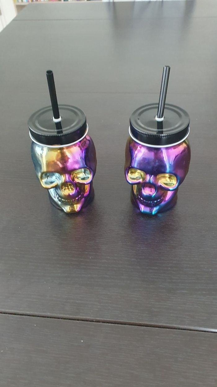 2 verres tête de mort avec couvercle et paille En parfait état