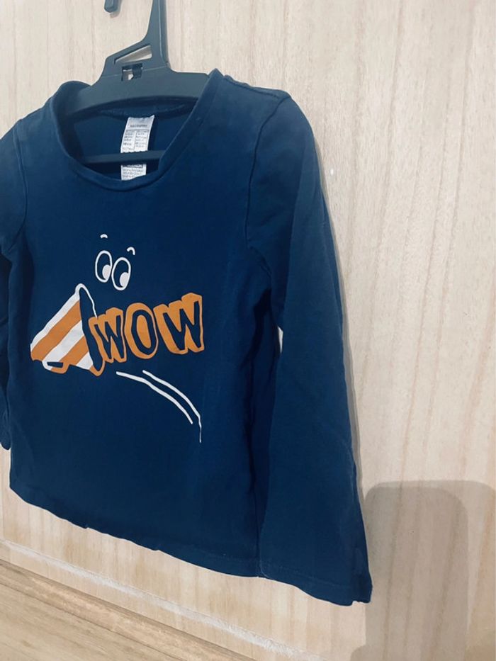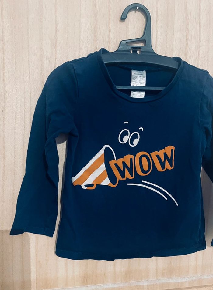 Teeshirt ML 89/95 cm bleu marine dessin au centre mégaphone avec inscription wow #jennyspearsbebe24mois #jennyspears3ans